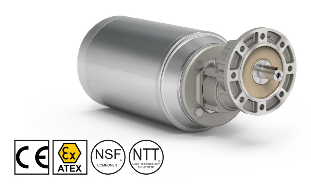 - Vollständig geschlossene und unbelüftete Bauform mit komplett glatter Motoroberfläche: Ein Garant für die Einhaltung der höchsten Hygienestandards
